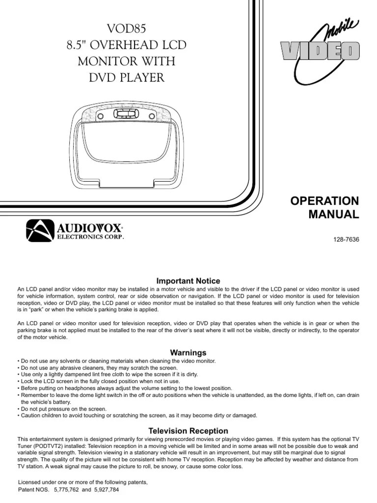Audiovox Overhead Dvd Player Manual - Audiovox Vod102 10 2 Overhead Lcd Monitor W Dvd Player Owners Manual Only Ebay -
